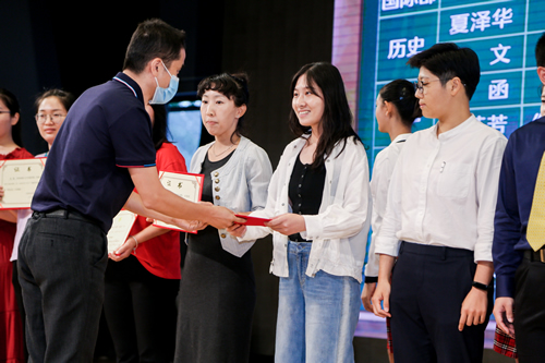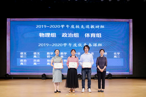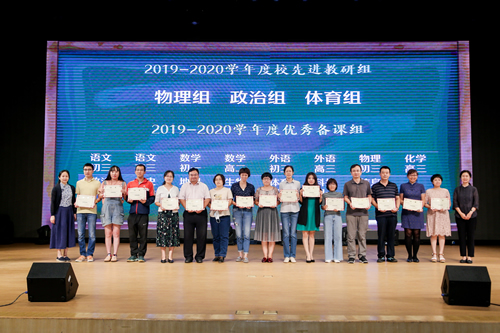 过去的一年,附中教师兢兢业业、勤勤恳恳,在各个方面取得了优异的成绩。学校各位领导为获奖的先进教研组、优秀备课组、优秀集体、优秀教师等荣誉称号获得者颁发证书,学生代表敬献鲜花。