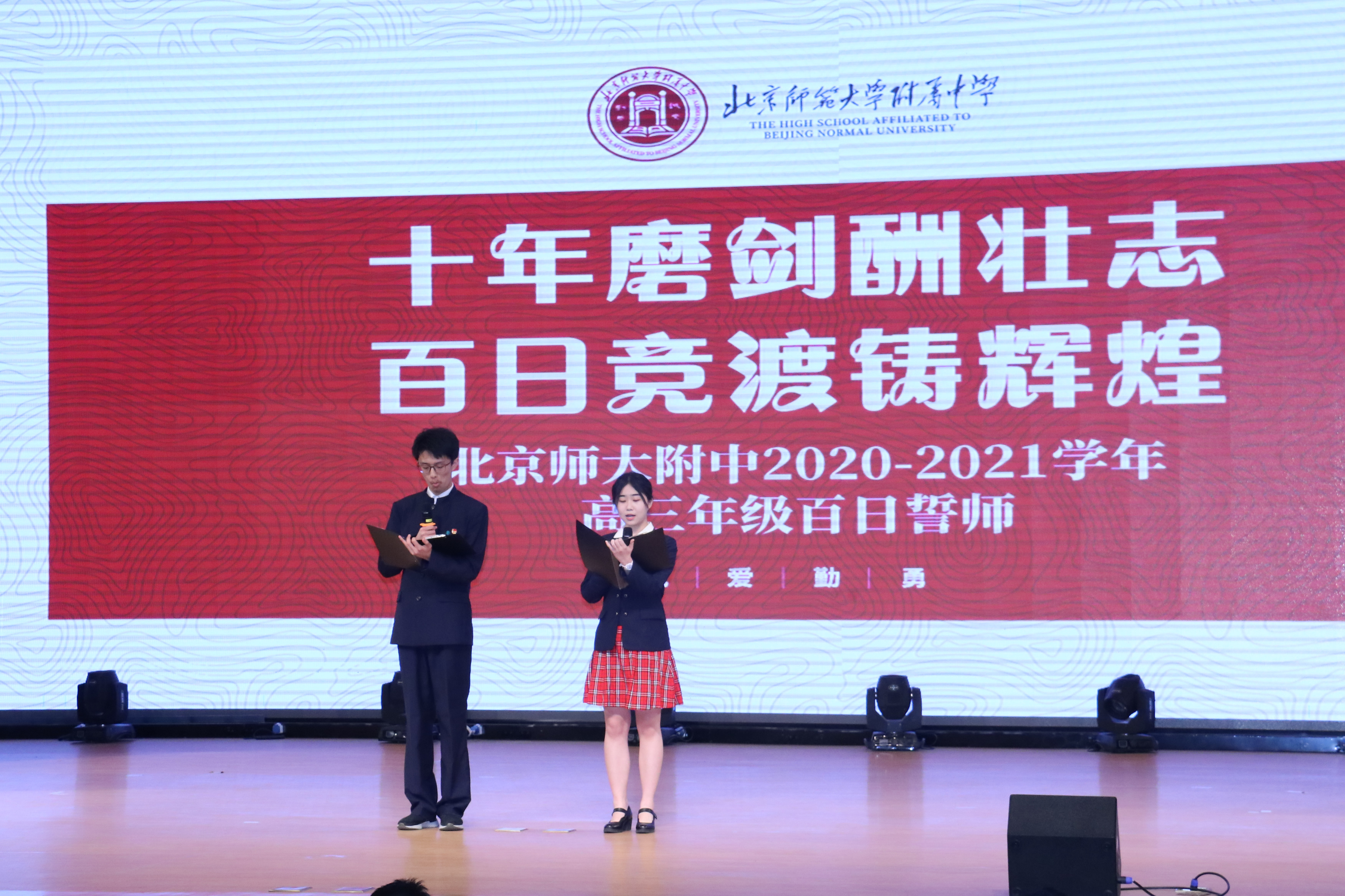 誓师大会以高三师生共同奋斗学习的影像作为开场。接着,王莉萍校长热情寄语高三师生。她讲到2021年是附中的120岁生日,百年中附中培养了一位又一位杰出校友,希望高三学子能够延续附中的传统,向前辈们学习,以建设祖国为己任,努力投身到高考备战之中。希望全体师生要坚定信念,奋力拼搏,超越梦想。