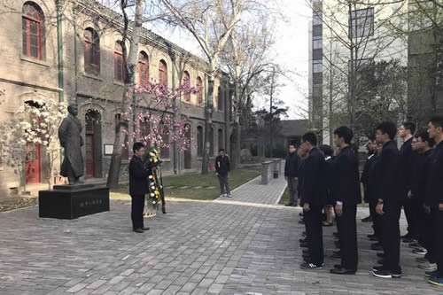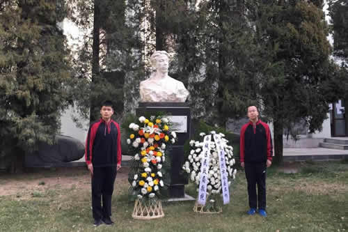 清明节是中华民族感恩追远、祭奠逝者的节日。2017年4月1日清晨,我校高二1班、高二9班团支部代表全校师生,在清明节来临之际,向矗立在校园内的赵世炎烈士像、钱学森铜像和林砺儒老校长的铜像敬献花篮,祭奠老校长、老学长,寄托哀思。