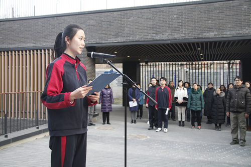 王莉萍校长代表学校领导班子向全体师生祝贺新春,并向同学们提出了新学期的目标。同时王校长更用她温和而有力的语言,激励全体同学努力向前,做更优秀的附中人。高一12班瞿欣畅、艾宇轩、张芾桐三位同学作为学生代表发言,希望大家既要广读有字之书,更要从生活中读到一本无字之大书,全面发展,做到博观约取,厚积薄发,每个人都可以成为附中的状元。