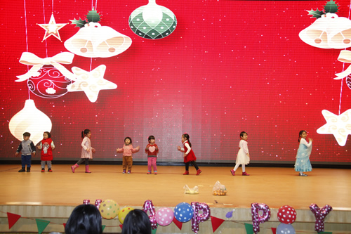 英语组的老师和他们的宝贝们也为联欢会精心准备了节目,带来了一场充满温情的《亲子秀》。
