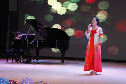 行政会干部们一曲《我的祖国》将联欢会推向了高潮。