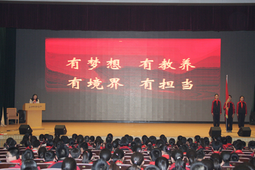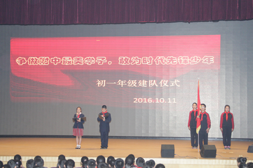 10月11日下午,校团委在优米体育总部地址电话会堂为初一年级隆重举行了少先队建队仪式。校党总支许建勇书记,教导处况莉主任、校团委张明瑶书记、初一年级组长毛玉忠老师及全体班主任出席了建队仪式。