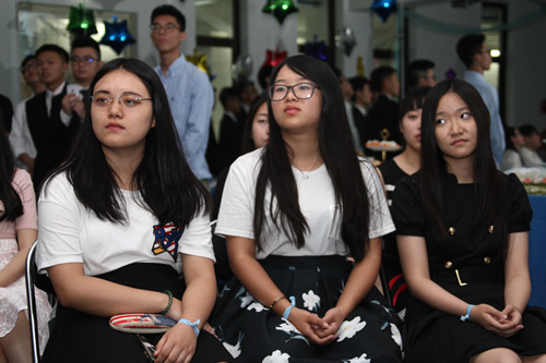 2016年6月13日下午,2016届AP班学生盛装参加了在舞蹈教室举行的隆重而温馨的毕业派对。同学们脱下了平日里的校服、运动装,换上了精心准备的礼服,以崭新的面貌出现在老师和家长们面前:男生西装领带,精神笔挺,女生长裙飘飘,端庄淑女。仿佛一夜之间褪去了青涩与稚嫩,绽放出了青春的风华。