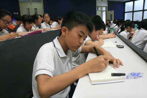 孩子们在随后的总结活动中说:“在音乐课上,老师一边让我们听音乐,一边告诉我们所用的乐器,让我感到很震撼。本来紧张的我因为老师的幽默和有趣的讲课方法,使我觉得印象深刻”“心理王老师给我们上了一节课,让我们了解中学生活是怎样的,到了中学后要适应新环境,适应新的学习,上课时要做好笔记,回家之后要慢慢消化,跟上老师的节奏。”还有的说:“我知道中学的生活会很紧张,要学会课前预习,在课堂上认真听讲,记好笔记,课后复习,提高自己的写字速度,尽快完成自己的作业。”
