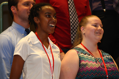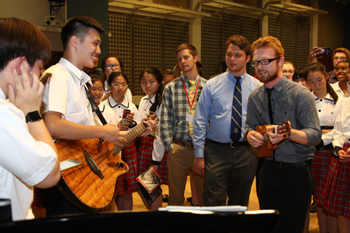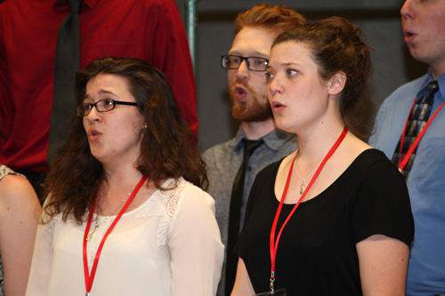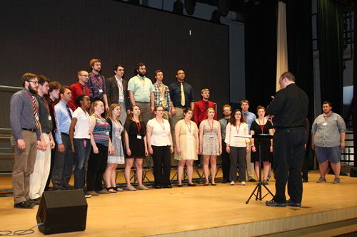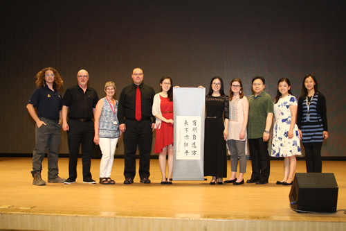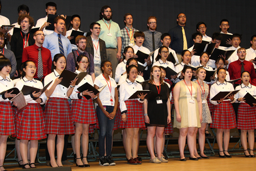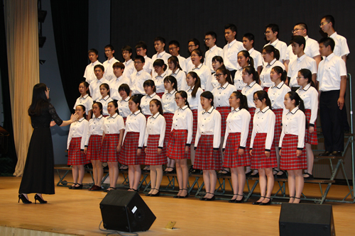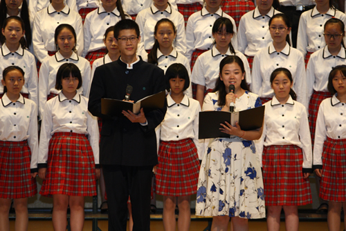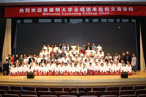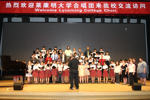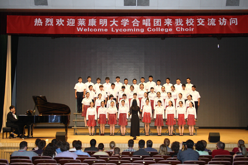 2016年5月17日下午,美国莱康明大学合唱团的师生一行到我校访问,并与我校初、高中合唱团联合举行了交流演出。