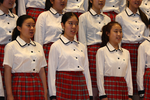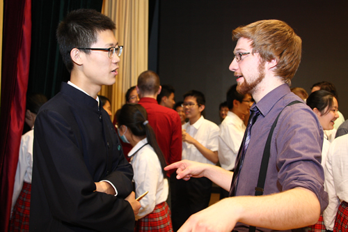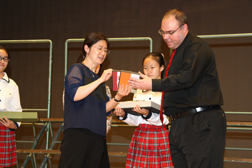莱康明大学合唱团也带来了他们精心准备的四首作品。细致入微的处理,富有层次的演唱,让在场师生深受感染,大家以持久而热烈的掌声向他们传递发自内心的喜爱与赞赏。我校初中合唱团也演唱了《唱不完的欢乐歌》和《我唱出了世界的声音》,表达我们“有朋自远方来,不亦乐乎”的喜悦心情。最后,中美两校的师生们共同唱起中国经典民歌《茉莉花》,将演出推向了高潮。