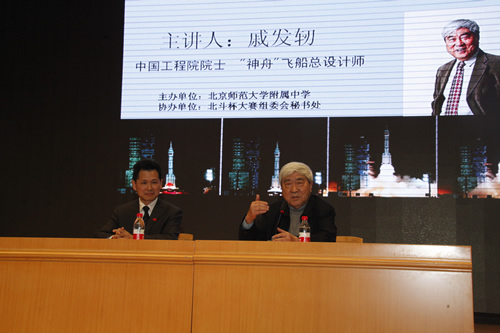 3月29日下午,著名的空间技术专家、“神舟”飞船总设计师戚发轫院士来到附中百年会堂,以“航天技术与中国航天”为题向师生们奉献了一场精彩的讲座。