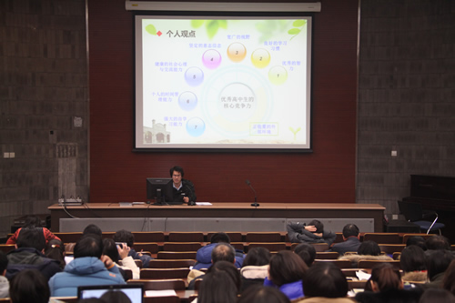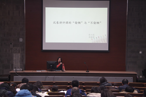2015年11月29日,科研月系列活动之“中高考研究”专题研讨会在南阶梯举行,大会由教学教研处邰美秋副主任主持,共有5位教师发言。历史教研组长李莉老师从整合通史教材、学生自我检测、设计学生学案、运用思维导图、指导自主学习等几个方面系统地介绍了高三历史从第一轮到第三轮的复习策略。英语组的葛竞老师作为高三英语备课组青年教师代表,较为全面地介绍了自主复习的学法指导策略;语文组的周晓明老师从毕业年级的一个常态化的重要课型——试卷讲评课出发,谈到了教师如何做到“偷懒”(不搞“一言堂”,给学生一定的时间交流)与“不偷懒”(做好试卷的统计分析工作、单独辅导等)。王彬老师从培养习惯、营造氛围、激发热情,如何召开家长会,以及人格塑造和素质培养等主题教育活动着眼,谈及了自己班主任工作的心得体会。许洪发老师从初中到高中的贯通式培养以及学科教学与德育工作相结合的角度,介绍如何对优秀生进行系统化的培养。本次专题研讨活动,不仅有助于毕业年级的老师们借鉴在中高考教学与德育工作上的具体策略,更有助于非毕业年级以及非应试学科的老师们对于学生培养工作的整体性、系统化思考。