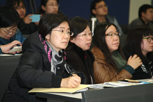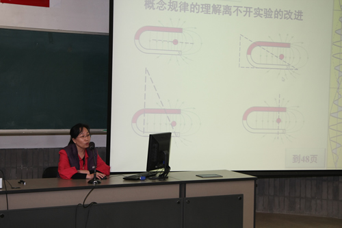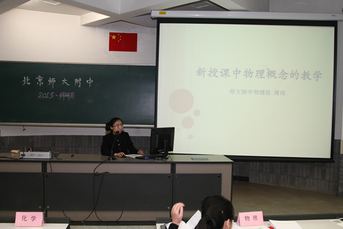 物理组分会场的活动由综合课程处吴士坤主任主持。物理教研组在概念教学方面做了大量研究和实践,马桂君老师首先展示了近几年物理组老师们研究成果论文汇编。然后由物理组老师们以《高中物理概念规律教学研究》为主题从不同层次和角度进行了汇报和交流,部分展现了物理教研组在概念教学方面的研究成果、或教学心得。参与汇报的老师们是:马桂君《高中物理概念规律深度研究》、周玮《新授课中物理概念的教学》、胡朗《在高考总复习突出概念规律的教学》、许洪发《2015届钱学森班物理教学情况》。