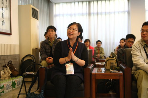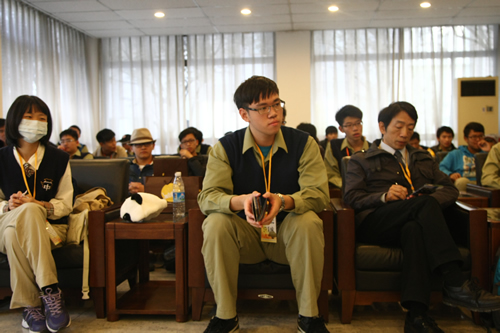 王莉萍校长、徐兰主任出席了在接待室举办的欢迎仪式。王莉萍校长和张添唐校长分别介绍了各自学校的现状和发展历程之后,王校长回答了台南一中学生对我校的钱学森班、文科实验班、国际班课程设置的问题,并对他们提出的相关建议表示赞赏和感谢。