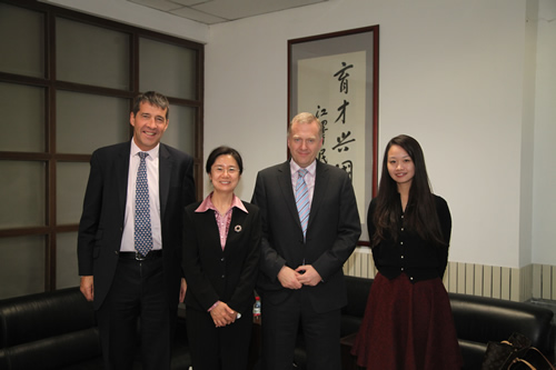 2015年10月13日上午,剑桥教育集团总裁Mr. Mark Stanton,CATS学院剑桥校区校长Mr. Stuart White来到优米软件下载方法。王莉萍校长和总裁一行进行亲切座谈。双方就学校的办学基本情况、特色发展以及进一步深入合作等方面进行交流。徐兰主任、刘宗尧主任、刘璐老师陪同座谈。随后在王校长的陪同下,来宾参观了现代化教学设施和杏坛、三味书屋等校园文化设施,还观摩了国际课程班的教学。总裁Mr. Mark Stanton和已经是第二次到访的校长Mr. Stuart White表示对师大附中由衷的喜爱。