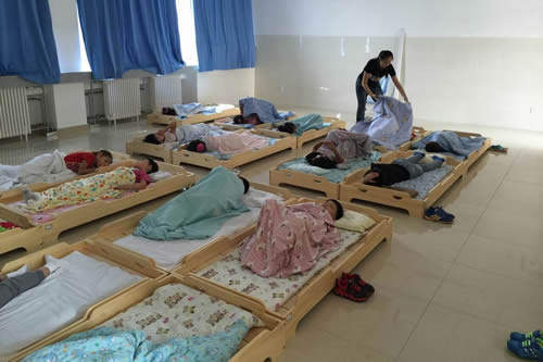 学校为迎接小学生的到来做了很多准备工作,专门为他们提供午休的小床,中午有老师帮助他们盛好饭,有高二的志愿者帮助他们收拾餐盘,有初一的志愿者陪伴他们做游戏。