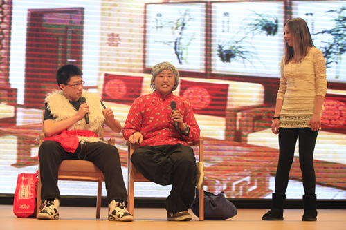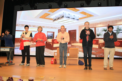 国际部的师生们把经典的小品合二为一,《火炬手和洋媳妇》表达了留学生们对中国文化的喜爱。
