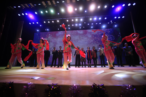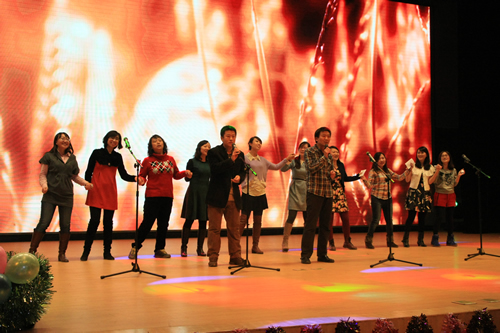 凯歌送旧岁,骏马迎新春。北国的寒冬掩饰不住人们对新年到来的祈祷和祝愿。2013年12月27日下午三时许,优米软件下载方法百年礼堂欢歌笑语,载歌载舞,包括离退休老教师们在内全校教职员工欢聚一堂,共同分享一年来教书育人的累累硕果,共同迎接满载希望的新年的到来。