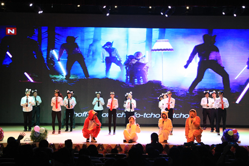 高二年级组紧跟时代潮流,一曲《狐狸》又唱又跳,令在场大家捧腹开怀。