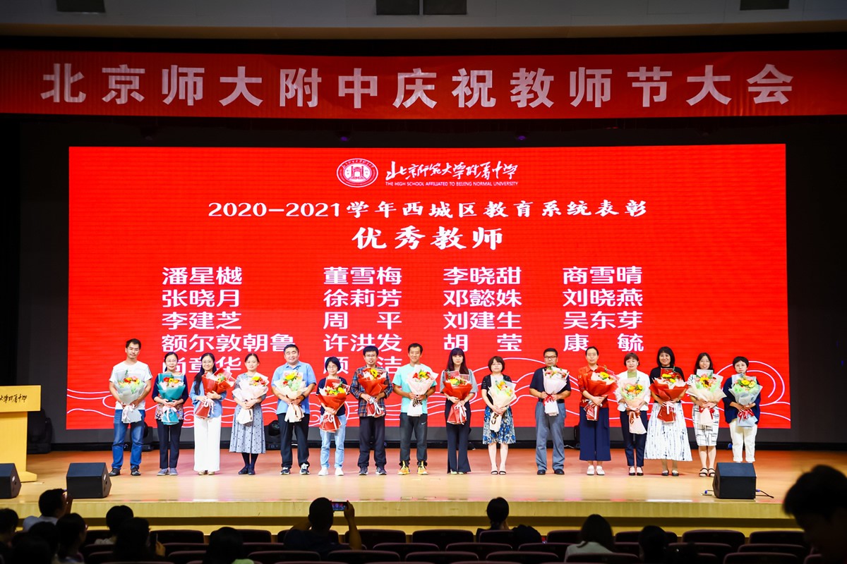 过去的一年,附中在教育教学中取得了非凡的成绩,这些成绩的取得是附中全体同仁,上下一心,勤奋工作,战胜疫情,砥砺前行,风雨无畏所取得的。顾咏梅副校长宣读了2020-2021学年第二届教学展示活动优质课名单及单项奖名单;许建勇书记宣读了2020-2021学年区教育系统优秀集体、优秀教师、优秀教育工作者和北京市紫金杯班主任、西城区优秀班主任名单,学校领导为获奖教师颁发了荣誉证书,学生们为老师们献上束束鲜花。
