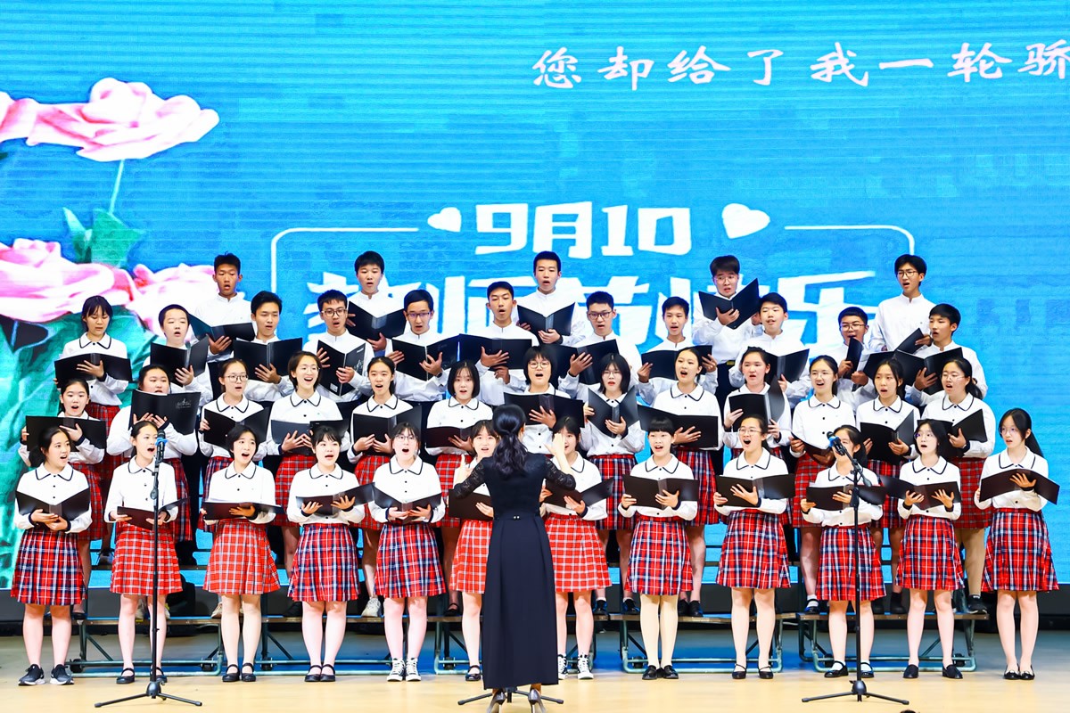 一片丹心育桃李,桃李满园献歌声。附中合唱团把《老师,我想对您说》深情的歌声献给老师,浓浓的师生情无以言表。金帆舞蹈团献上原创作品《心中的歌》,舞姿袅袅、真情切切。