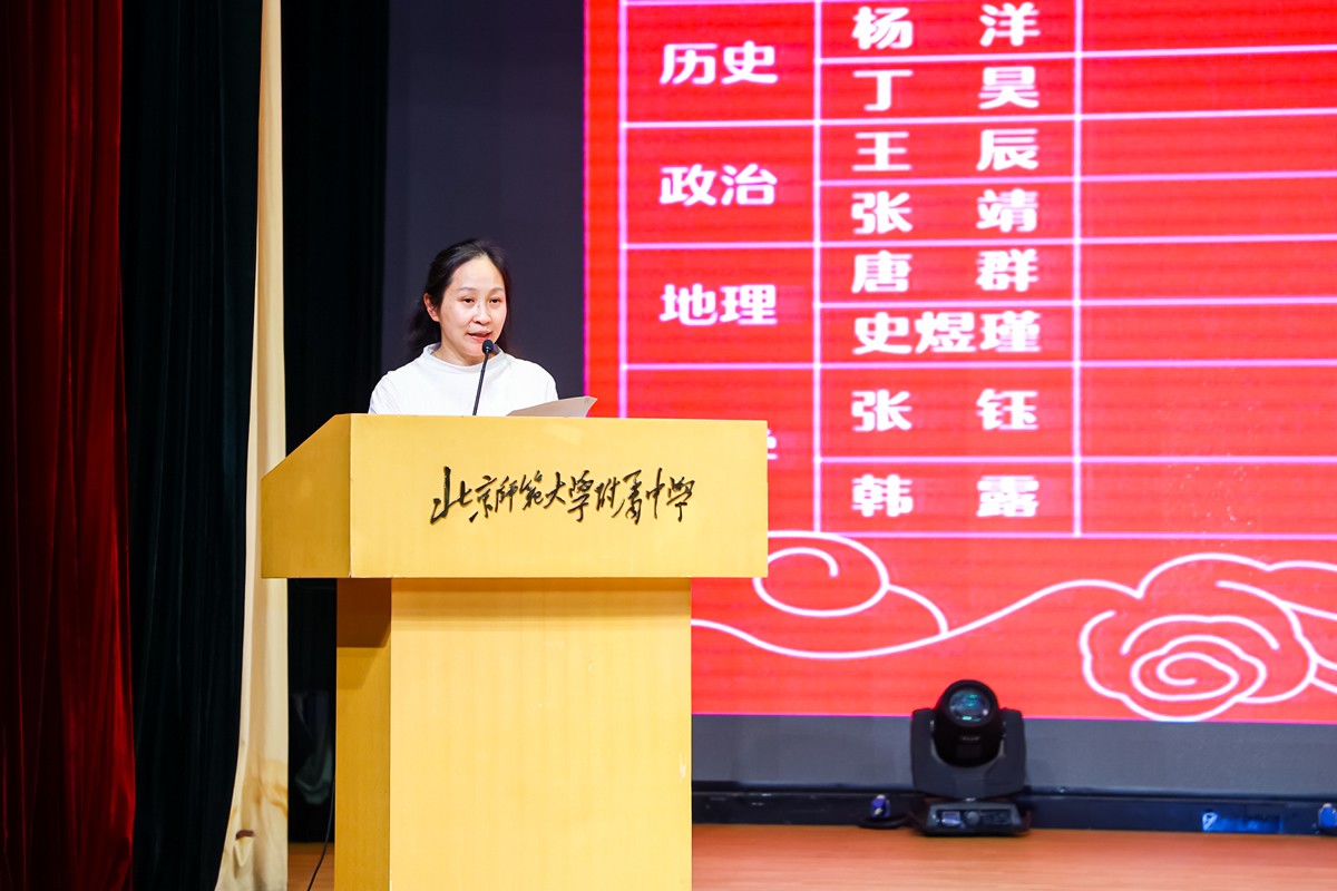王莉萍校长为教师节致辞。王校长代表学校领导集体,向老师们致以节日的祝贺,并引用我校杰出校友、北师大文学院资深教授王宁先生“平凡背后的崇高才是教育事业的魅力”的话语诠释了附中教师的教育情怀。王校长鼓励大家:前辈们已将接力棒传递到了我们的手上,我们一定要稳稳接住、代代相传。为党育人、为国育才是我们附中人坚持“全人格教育”初心的新时代使命。我们要为培养坚定不移的爱国者,科学真理的追求者,幸福生活的创造者,民族复兴的担当者做出新的更大的贡献。