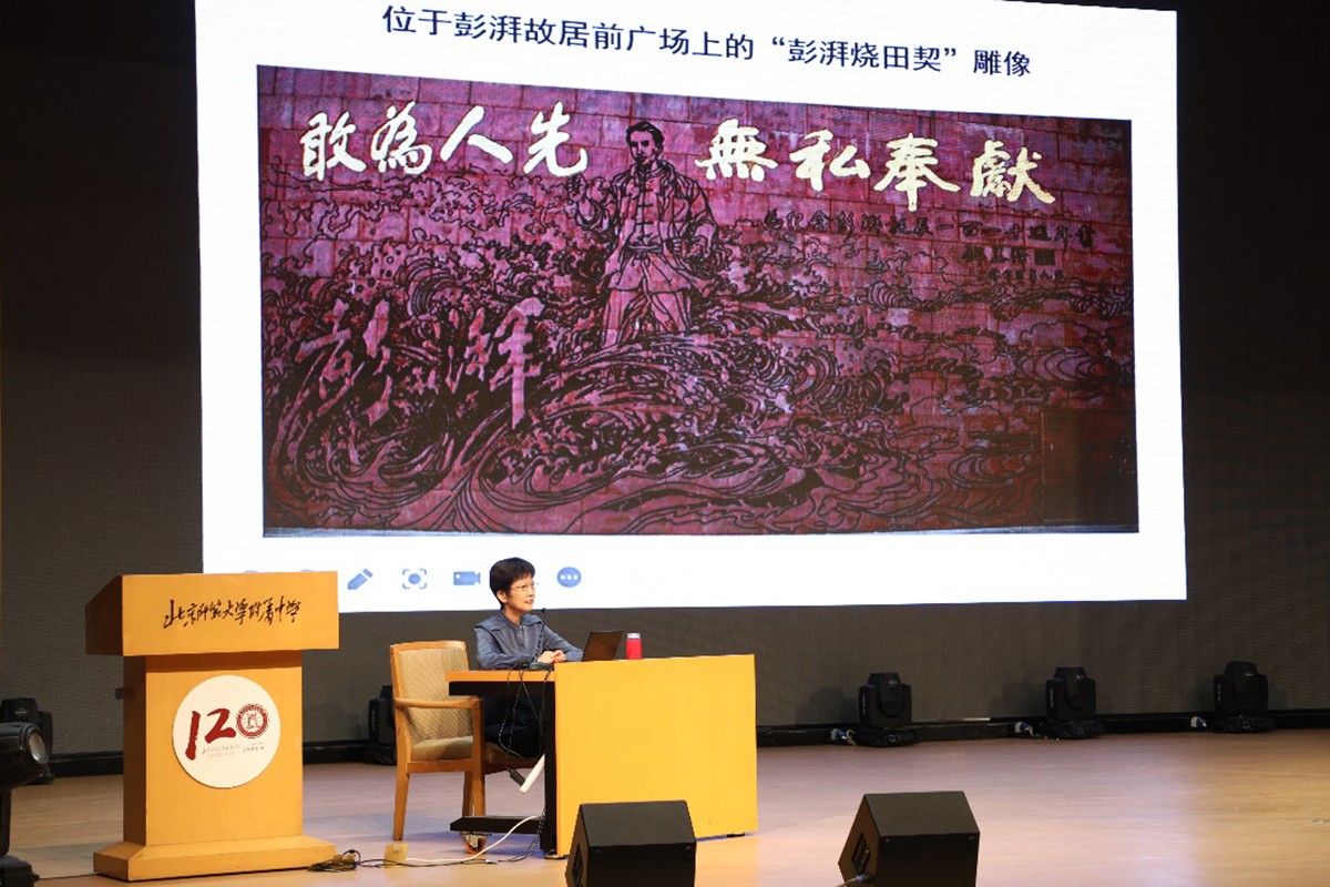 澎湃烈士牺牲了,然而红色的火焰却没有就此熄灭。跟随着彭洁女士动情的讲述,彭士禄院士坎坷的人生经历铺展开来:8岁入狱成为年龄最小的政治犯,姓百家姓,吃百家饭。历经层层磨难后艰难地活了下来。他在党组织的栽培和自身的努力下,终成一代中国核潜艇之父,成为了中国核事业发展的拓荒牛。主会场与分会场的师生,聚精会神地听着彭院士波澜壮阔的人生经历,深深被他奉献人民、敢于开拓的精神所吸引,感慨于那些来自时代和命运的坎坷并没有将他摧折,反而磨砺出了他自强不息的精神,和淡泊名利、无私奉献的品质,这是彭院士为我们留下的宝贵精神财富。