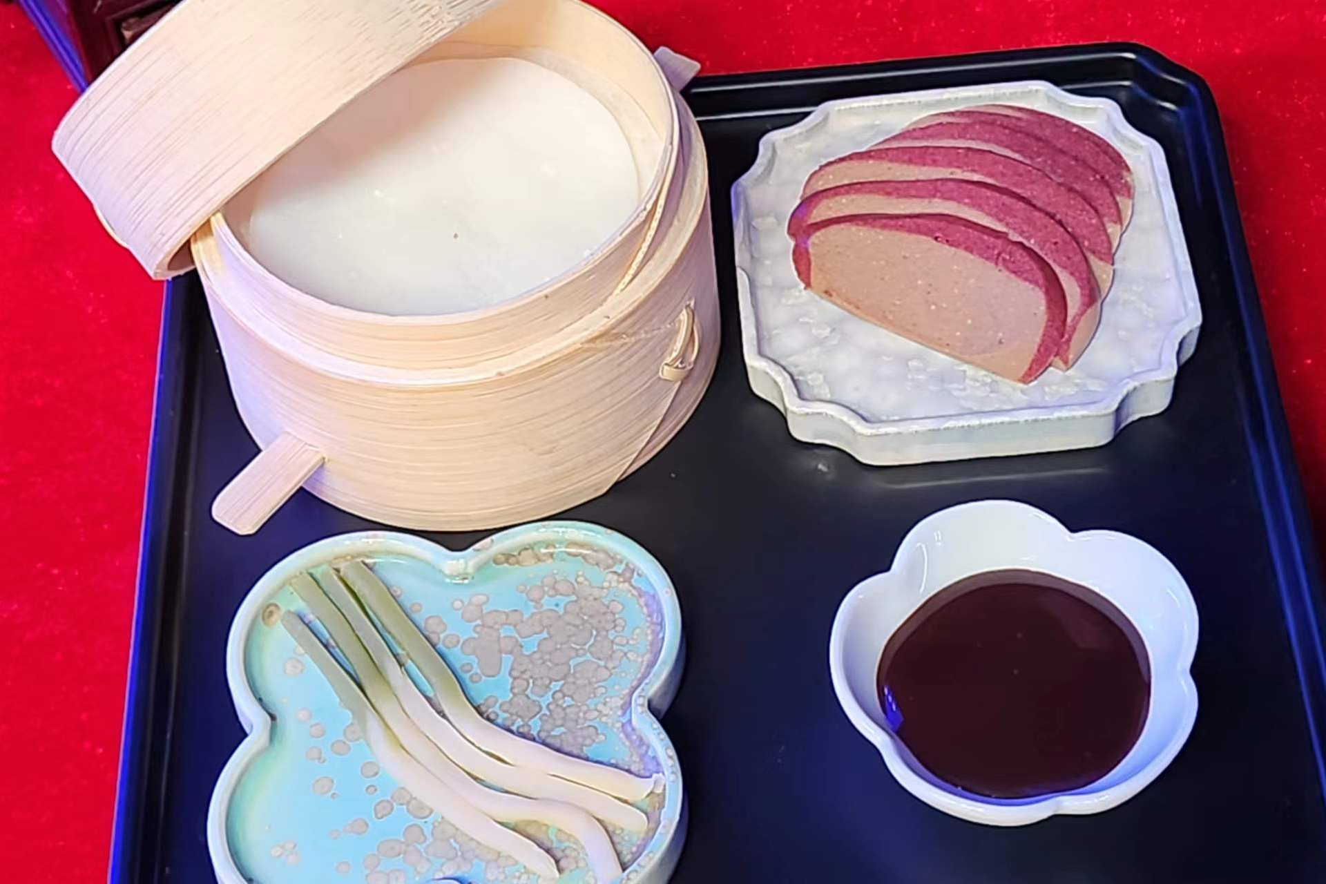 试吃环节更是极富趣味性,模仿烤鸭卷的蛋糕、杯口粘盐的颜色饮料都充满着创新的气息,在古典中透露出“潮”气。