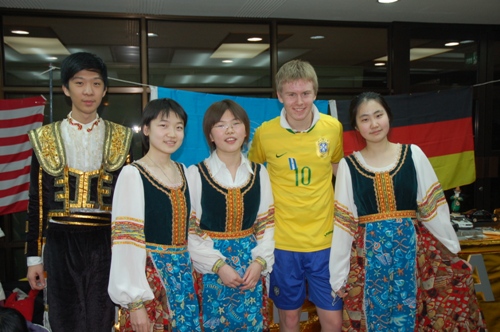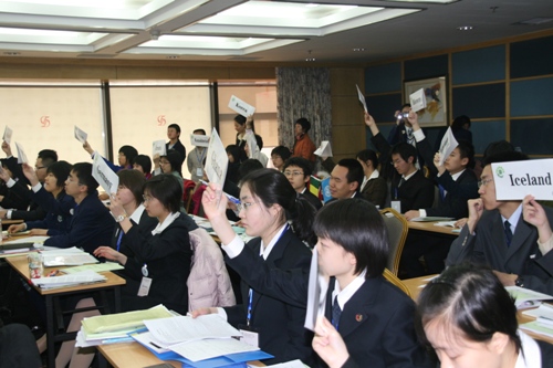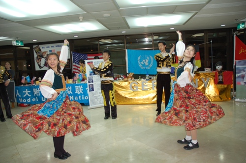 3月9-11日,“北京大学2007年全国中学生模拟联合国大会”在北大英杰交流中心隆重举行,来自全国38所中学400多名优秀学生参加了这次会议。我校高一、高二年级的15名学生在任莹、王雁红、邰美秋老师的带领下参加了会议。其中,10名同学分别代表德国、文莱、吉尔吉斯斯坦、加纳和斯洛文尼亚五个国家,在安理会、妇女地位委员会、亚太经社委员会、世界卫生组织各个委员会中充分得体的体现了所代表国家的立场,展现了我校学生的风采,获得“优秀组织奖”。5名观摩团的同学负责会议现场“意向条”传递者的工作,并承担起本校此项活动的准备和诸多服务工作的重任。在地球村的展示活动中,我校所布置的德国展台,受到了与会的其他代表国家的老师、学生们的高度评价,特别是当学生们身着德国民间服饰,跳起了德国民间舞蹈时,赢得主席团成员和各国代表的热烈掌声,成为本次大会的一大亮点。