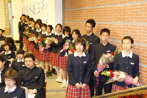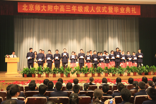 既然分别在所难免,就让我们把满怀的期盼,托付给明朝重逢的喜悦。随着成人仪式暨毕业典礼的结束,同学们也将迈上新的人生起点。高三同学们表示在即将到来的高考和今后的人生旅途中,将用频传的捷报报答附中的悉心教导。