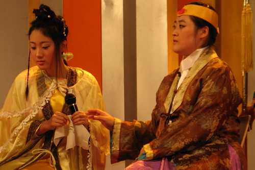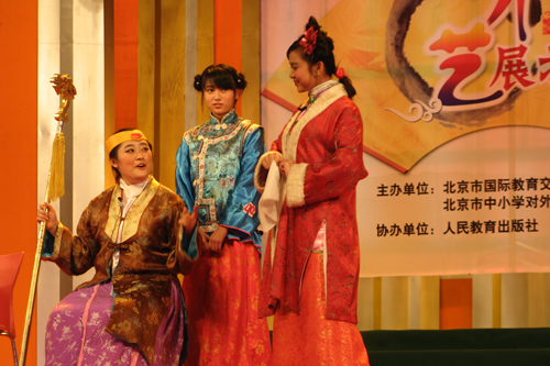 在刚刚落下帷幕的2008北京市中小学外国学生汉语节活动中,由我校留学生表演的话剧《红楼梦》片段――《林黛玉进贾府》,在选拔中获得评委赞赏,作为优秀汉语节目入选汉语节才艺展示汇报演出,并在演出中取得圆满成功。参加这个节目表演的有来自五个国家的学生,她们是:土耳其的黛丽娅,日本的高原爱,韩国的卢元、赵美玲,柬埔寨的索菲吉西和美国的鞠爱娃。她们在国际部顾洁等老师的指导下,成功地塑造了宝玉、黛玉、贾母、王熙凤等人物形象,并在此过程中深入体验到了中国传统文化的魅力!