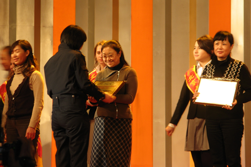 顾洁老师代表我校领取2008中小学汉语节优秀组织工作奖