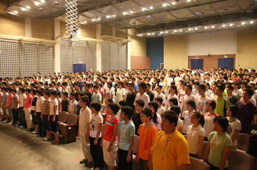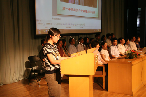 2007年8月10日是我校高一年级新生入学报到的日子。在百年会堂,学校举行了简短的欢迎仪式,刘沪校长,梁原草、王莉萍副校长,许建勇副书记,校长助理顾咏梅及况莉主任等学校领导参加了欢迎仪式,年级组长刘莉娟老师及高一年级全体班主任老师在主席台上就座。会上,刘沪校长代表附中全体教职员工欢迎了高一年级新同学的加入,并向大家介绍了高一年级新班主任,教师代表苏永乔及新生代表都发了言。 422名高一新同学以饱满的精神风貌参加了高中生活的第一次集会。后天,高一年级全体新生将精神抖擞的奔赴石家庄机械化步兵学院参加为期十天的军训活动,从此展开了人生的新一页――高中生活。