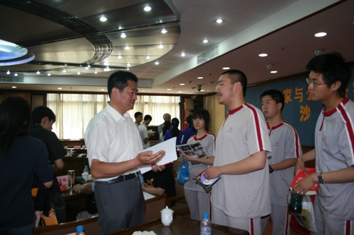 在会上,老科学家们针对我国科普工作的现状及紧迫性,依次发表了精辟的见解。当老科学家们的发言刚刚告一段落,此时会场上发生了一件出乎人们预料的事情,我校学生王英骁举手示意主持人要求发言,主持人临时修改议程,破例同意他发言。王英骁就我国科普工作的发展落落大方地谈出了自己的想法和建议。他讲到,现在许多中学生都在追星,那是因为现在的媒体中到处都充斥着这方面的信息,而要追求科学知识或科学家的故事却很难寻。希望我国的各个部门能够注意到这点,充分利用现代传播媒介来拓宽青少年获取科学知识的途径,像于丹可以在百家讲堂中把论语讲给大众,科普宣传也应该利用这些传统的平面和电视媒体平台来宣传科普知识。另外,希望像清华大学等一些高等学府能开放自己的实验室,让高中生在中学时代就能开展自己的研究,培养科学的兴趣。还可以将科学家们的讲座、报告做成光盘,利用互联网的快捷方便优势等许多途径广泛传播科学知识、科学家的故事,使大众有更多的途径了解科学知识,使青少年从盲目追星中摆脱出来,从而热爱科学、尊重科学,提高全民族的科学素养。……。他还讲到,在寒假中他曾给比尔?盖茨写过一封信,比尔?盖茨及时地回了信,希望他能珍惜高中和大学的各种科学手段学习最多的知识。比尔?盖茨的回信给了他极大的鼓舞,也使他更加热爱学习,如果我们的科学家也能这样,与我国广大的青少年之间建立一条通畅的纽带,使青少年能够与科学家之间保持密切的联系,那对于我国科学技术的发展将是非常重要的。他的发言得到了与会人员的热烈掌声,给各位科学家和与会记者留下深刻印象。