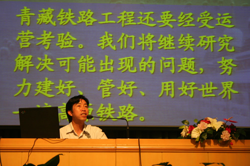 2006年9月4日下午班会时间,学校邀请青藏铁路建设者之一、国家青藏铁路领导小组办公室常务副主任覃武凌给全校师生做了一场关于青藏铁路建设的报告。报告讲述了青藏铁路建设中所遇到的种种重大难题,以及铁路工程师们如何克服这些难题,并取得举世瞩目的骄人成就。通过报告学生们知道了,青藏铁路是当今世界最宏伟的工程之一,是人类铁路建设史上前所未有的壮举,是中国共产党在地球之巅上树立起的一座历史丰碑,是我国社会主义现代化建设的一个伟大成就,是我国铁路建设史上的一大奇迹。建设青藏铁路是党中央国务院在本世纪初作出的重大战略决策,是西部大开发的标志性工程,对于加快青海、西藏经济社会发展,对于改善沿线各族群众生活、加强民族团结、共同实现全面建设小康社会的宏伟目标,对于巩固国防等,都具有十分重要的意义。