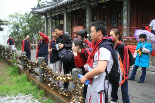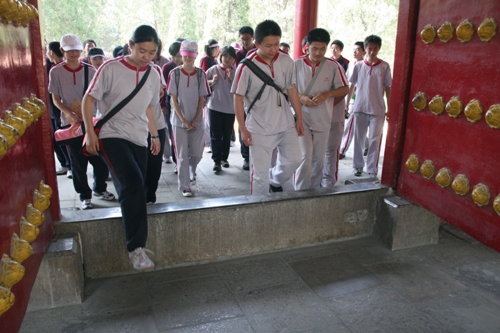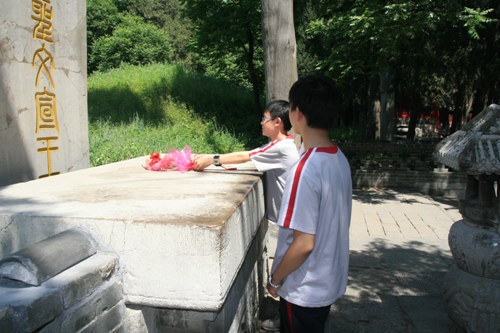 第一天学生们首先来到了曲阜。曲阜是中国儒家思想的发源地,历史文化名城之一,被誉为“东方圣城”,是伟大的思想家、教育家、政治家一一孔子的故乡。以曲阜“三孔”:孔庙、孔府、孔林为代表的古代建筑群集中体现了中国传统文化的色彩。虽说经过了一夜的旅途奔波,可穿梭在儒家历史的长河中,小憩于巨柏古松旁,再感受着空气中无处不在的儒家博大精深的文化精神,自有一份惬意与感慨――王朝兴衰,儒家依旧。