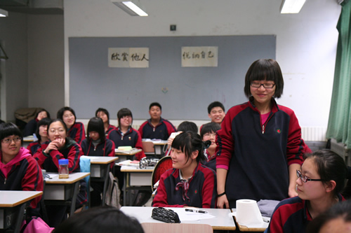 近日,我校高二年级各班举办了“欣赏他人、悦纳自己”主题教育班会。在本次班会中,各班充分发挥本班特长,利用人生寓言、小品、性格测试、访谈、墙报、“夸夸我的好朋友”及“猜猜这是谁”等各种形式的活动,来展示、发现、更深的了解自己身边同学,从而起到团结同学,构建健康向上和谐的班级氛围,及形成正确的待人接物的人身观、价值观和交友方法。高二(1)班的班会中,同学们别出心裁的设计了“评选班级之最”的活动,将气氛推向高潮,各位“获奖”同学,也在同学的积极评价当中,更好的认识了自己的优点与特长。