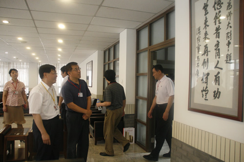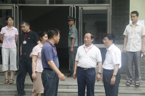 6月7日上午,中共宣武区委书记王宁同志在区委区政府、教工委教委和考试中心有关负责同志的陪同下,来到我校巡视高考考场,刘沪校长、王莉萍副校长在我校西区接待领导巡视。随后区领导来到我校东区,刘沪校长、李敏副校长向领导简要汇报了学校情况,特别汇报体育运动场建设的困难。王宁书记表示关切,并请有关负责同志认真研究,表示一定支持师大附中把学校办得更好。在刘沪校长陪同下,王宁书记等领导视察了我校校园。