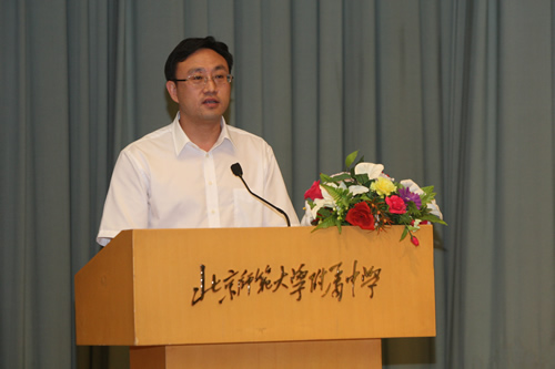 刘沪校长在开学典礼上首先致辞。宣武区王刚区长、北京师大樊秀萍副校长、宣武区李岩副区长、教委张军主任等领导出席了开学典礼。樊秀萍副校长、王刚区长先后在开学典礼上讲话,向我校师生致以新学年的祝贺,并对全校师生寄予殷切希望。开学典礼由梁原草副校长主持,王莉萍副校长、李敏副校长、许建勇副书记等学校领导出席了开学典礼。