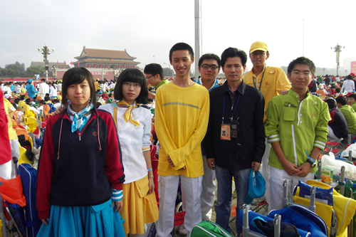2009年10月1日上午,优米软件下载方法国庆庆典中心区背景表演大队共计师生751人,在刘沪校长、梁原草副校长、许建勇副书记的带领下来到天安门广场参加新世纪首次国庆盛大阅兵仪式。我校与全市270所中小学,8万多名学生共同承担背景方阵表演。组字包括“中华人民共和国万岁”“中国共产党万岁”“人民万岁”“社会主义好”等;图案包括金黄色麦田、五星红旗、盛开的牡丹、长城、和平鸽等;并协助完成巨幅国画《江山如此多娇》的展示。同学们近乎完美的表现,获得了国庆庆典指挥部的高度赞扬。