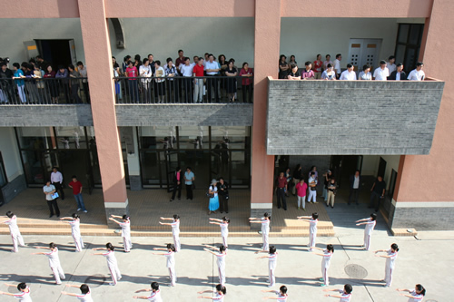 与会人员观看了我校同学的课间操表演并观摩了包括我校4名教师在内的区6位体育老师所上的体育展示课,对我校师生表现出来的良好精神面貌、高质量的技术动作给予充分肯定、高度赞扬。