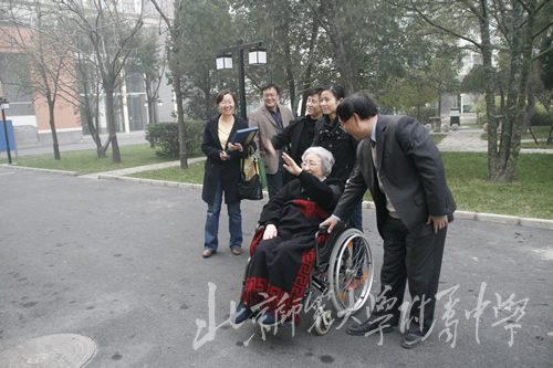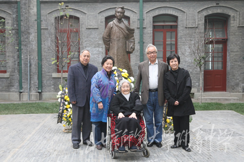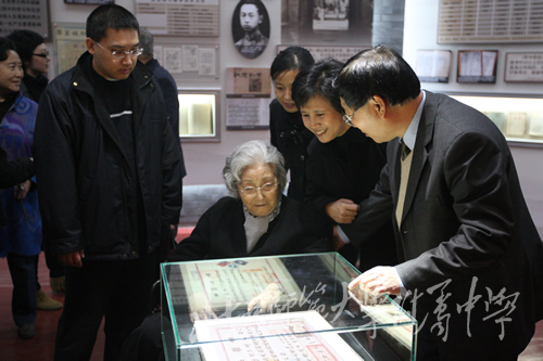 2009年11月7日,我校校友、我国杰出科学家钱学森院士的夫人蒋英教授,儿子钱永刚先生,女儿钱永真女士及丈夫沈先生来校参观“钱学森纪念馆”。刘沪校长代表全校师生表达了对钱老的无限怀念之情,并向钱老家属赠送了“钱学森纪念馆”画册。随后,刘沪校长、梁原草副校长、许建勇副书记及钱学森纪念馆筹备小组人员陪同钱老家属参观了“附中人钱学森”铜像和新建的“钱学森纪念馆”。蒋英教授仔细地观看了展览图片,非常认真地听取刘沪校长的讲解。年届九旬的蒋英教授饱含深情地拉着刘沪校长说:“校园很漂亮,钱老常常提起这里。今天很高兴,收获很大,很多照片我都没看过。我一定还来附中!”钱氏兄妹也对“钱学森纪念馆”给予了高度评价。钱永刚先生还向学校赠送了由新华通讯社出品的《史志性电视纪录片――感动中国・钱学森》光盘。