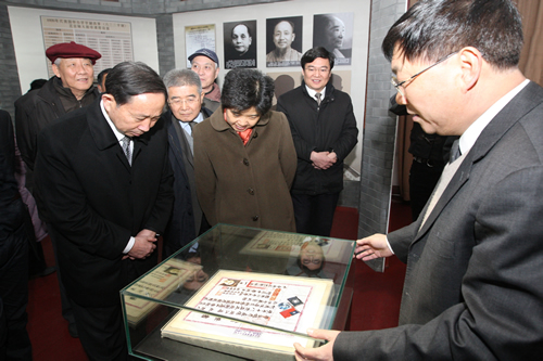 2009年12月10日,我校召开“纪念钱学森先生诞辰98周年、师大附中毕业80周年大会”,举行钱学森纪念馆开馆仪式,作为钱老生前的好同事好朋友,您不顾80高龄和天寒地冻,在百忙之中光临我校出席活动,这是对我校师生的极大鼓舞。目前,我校全体师生正在开展向钱老学习的活动,您又为我们树立了光辉的榜样,我们一定向您学习,爱国奉献、顽强拼搏、勇于探索,努力做出无愧于时代、无愧于人民、无愧于历史的业绩。