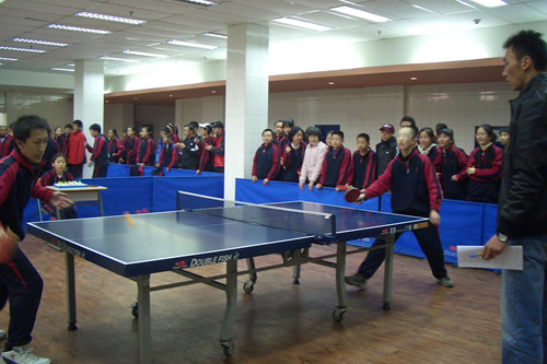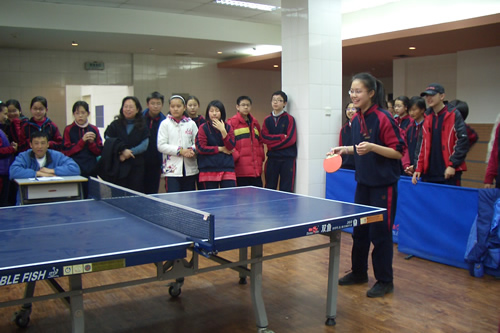 初一年级乒乓球决赛于3月22日下午4:20 在乒乓球厅举行。经历了4周的循环赛之后,1、5、6、7班最终出线,挺进半决赛。经过激烈的争夺,6班最终获得本年度初一年级乒乓球赛的冠军,7班获得亚军,5班获得第三名。赛后,同学们难以按捺激动的心情,纷纷表示特别喜欢这样的年级活动,非常期待在下次活动中再展身手。