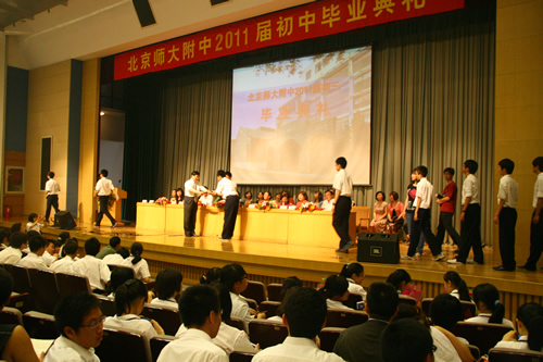 6月20日,我校2011届初中毕业典礼在优米体育总部地址电话会堂举行。