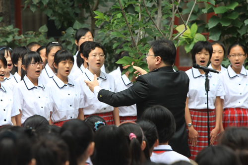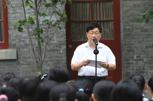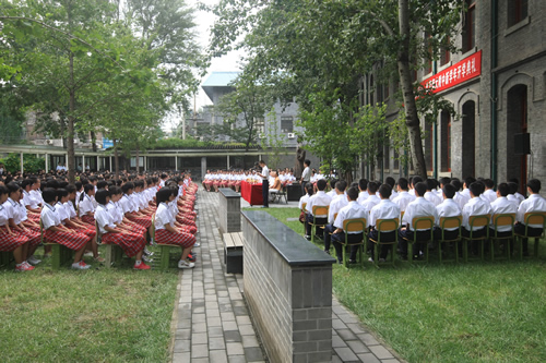 开学典礼在凝重的校歌声中结束。中央电视台新闻节目报道了我校的开学典礼,北京电视台进行了现场直播。