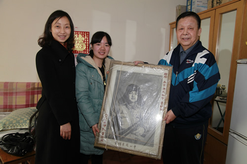 2月29日上午,况莉、朱静静、张增山三位老师来到原我校化学教师刘振贵的家中拜访。刘老师向学校捐赠了1984年雷锋班战士赠给我校雷锋班的一张他们亲手绘画的雷锋画像,及我校雷锋班荣誉锦旗两件。