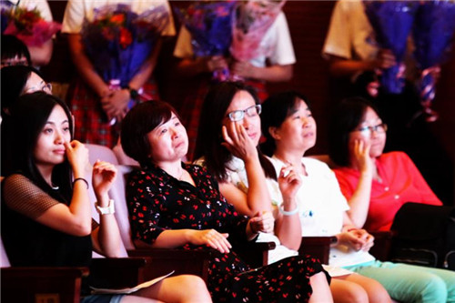 由初三学生创作的附中生活视频,带领大家重温在附中学习生活的时光,台下许多同学热泪盈眶,对母校的依恋之情充满百年会堂。