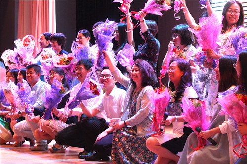 同学们用一组师生情景对话传递了对恩师的不舍与感恩。十二位班主任和年级组长依次登台,深情回顾三年来的点滴生活,表达了对同学们的深切祝福和期盼。同学们纷纷上台向老师们鞠躬致谢并献上鲜花,表达对恩师教诲的感激之情。