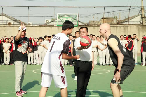 许建勇书记为此次篮球嘉年华活动开球。全体高一师生在经过一周的预赛基础上,分作黑白两大阵营,分别在四对四半场比赛、投篮比赛、男女双人投篮比赛三个项目中进行了激烈的角逐。最终高一7至14班联队获得四对四比赛冠军,高一(2)班王芳琦同学(女)获得投篮比赛冠军,唐群老师和高一(4)班赵可同学(女)的双人组合获得了双人投篮比赛冠军,我校外教ANDREW(大白)老师获得最有价值球员称号。比赛间歇还有高一同学拉拉队的表演,使活动高潮不断。