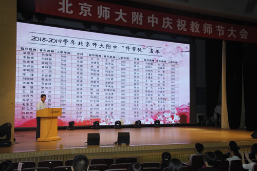 大会在金帆舞蹈团表演的舞蹈《彩云追月》中开始,结束于合唱团献给教师们的《阅读祖国》歌曲声之中。教育是教师们的共同事业,附中是附中人的共同家园。希望所有附中人都能继续团结一致,始终以德树人,弘扬师德,让附中历久不衰,写就崭新的辉煌篇章!