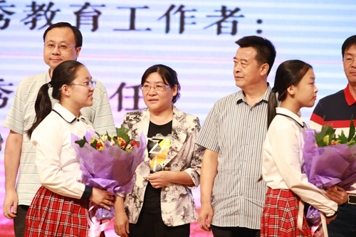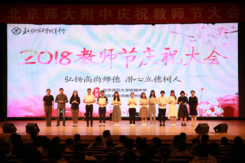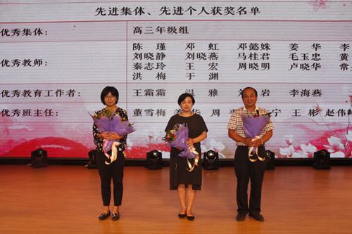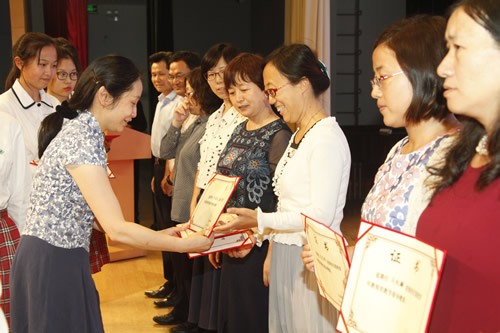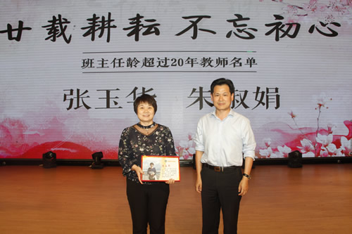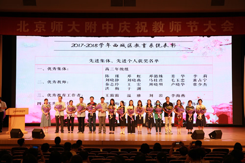 大会上,21位区教育系统优秀教师、优秀教育工作者和1个优秀集体以及6位优秀班主任登台领奖。王莉萍校长、许建勇书记、顾咏梅副校长、李华艳副校长、为从教十年、二十年、三十年、逾三十五年以及班主任龄二十年的31位教师分别颁发了“亭亭如盖”、“花开正红”、“硕果累累”、“桃李天下”“大爱丹心”等从教纪念章。梁原草副校长还为“廿载耕耘 不忘初心”班主任龄逾二十年的班主任颁发了西城区表彰的纪念奖牌。