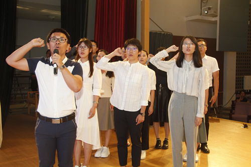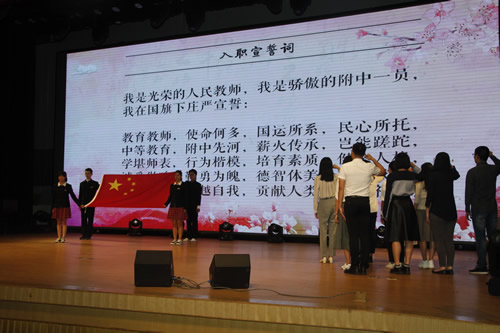 本次大会中,11位新入职的教师登台亮相,热情的向所有老师做自我介绍,向教学和班主任指导教师行拜师礼,并面对国旗立下了“诚爱为魂,勤勇为魄”的从教誓言。学校为每一位新入职教师颁发“新芽吐绿”主题的入职纪念章,期冀他们在优米体育总部地址电话的沃土佳苑中生根发芽,成为附中教育花园中的一抹新绿。